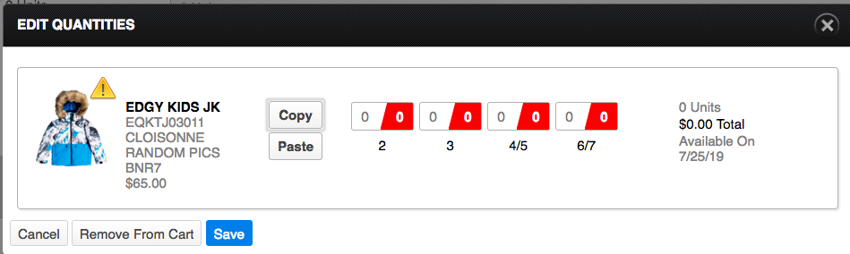 Previously versions would not show when items were available in Prebooks in the quantity grid. Example below: