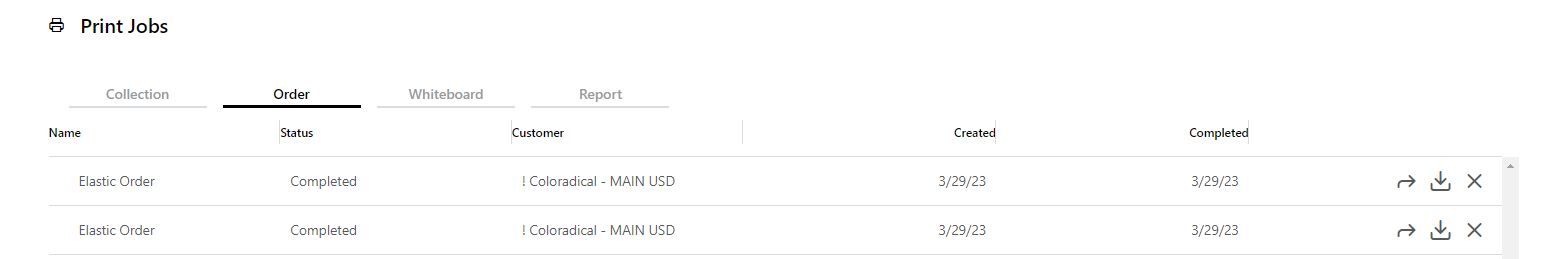 4. Your print jobs view will open - select the 'Order' tab to view all of your generated order PDFs.