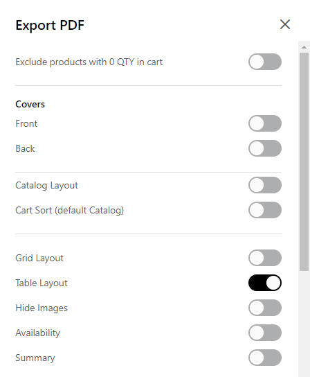 2. The 'Export PDF' modal will open. Make sure that 'Table Layout' is selected. Click 'Export PDF' in the bottom right corner.