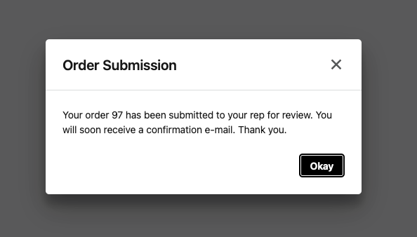 Upon submission you will see the following message below and will receive an initial order confirmation: