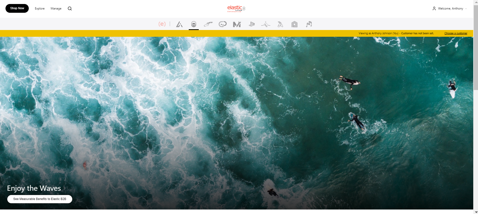 The Explore page is the first screen you will come to after logging into Elastic. It is the central hub you will come back to, to access the different features on the site. To begin you can select the 'Manage' drop-down for a full list of available actions or as you scroll down you can use any of the functions that are integrated into the Explore page. These can include: Call To Action Links on the Marquee, Announcements, Collections List, Catalogs and Links.