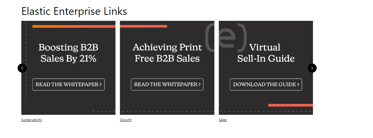 The brand may choose to use the 'Call to Action' button which will be shown in a white bubble in the corner of the marquee image or video. Links here can be to another page or catalog in Elastic or to a webpage outside of Elastic.