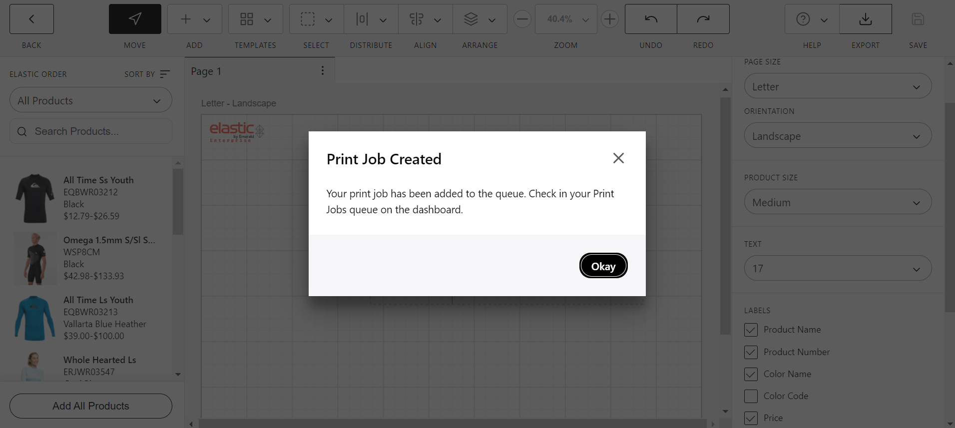 After you have generated a PDF, you will receive a prompt that your "Print Job has been added to the queue."