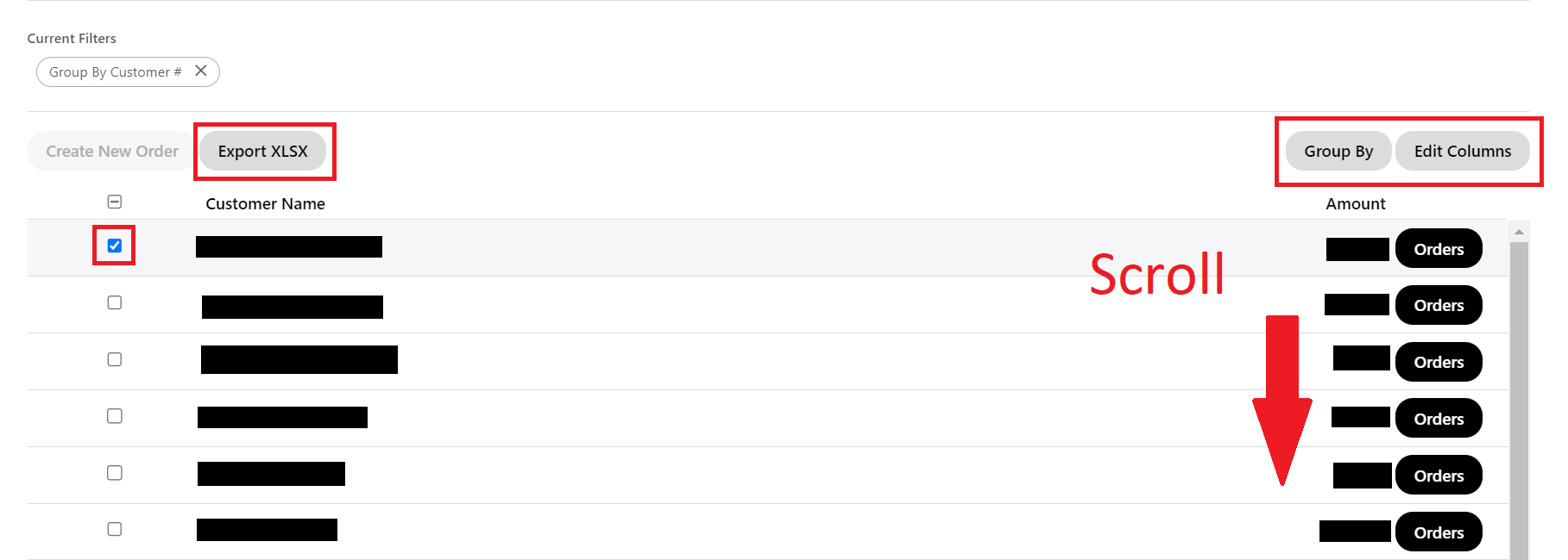 You have the option to export an XLSX file from any Order History detail page. How you choose to organize the column headers using the "Group By" and "Edit Columns" buttons is how the file will export onto the XLSX file.