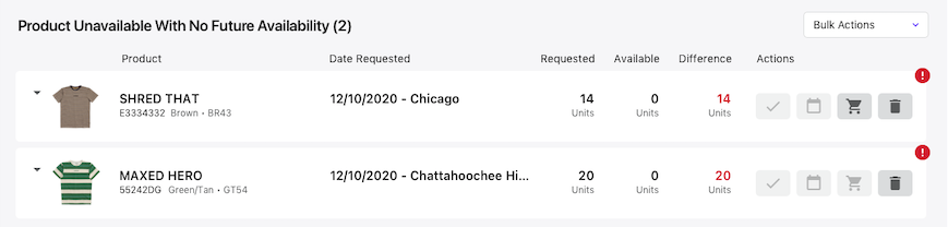 The summary will also list items that might be completely unavailable with no current or future availability within the current workbook.