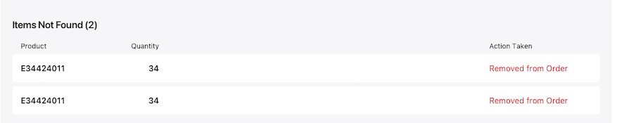 Finally, you may see items that are not found during the import. This means that the UPC or SKU that was uploaded did not match any UPCs or SKUs in the current workbook.
