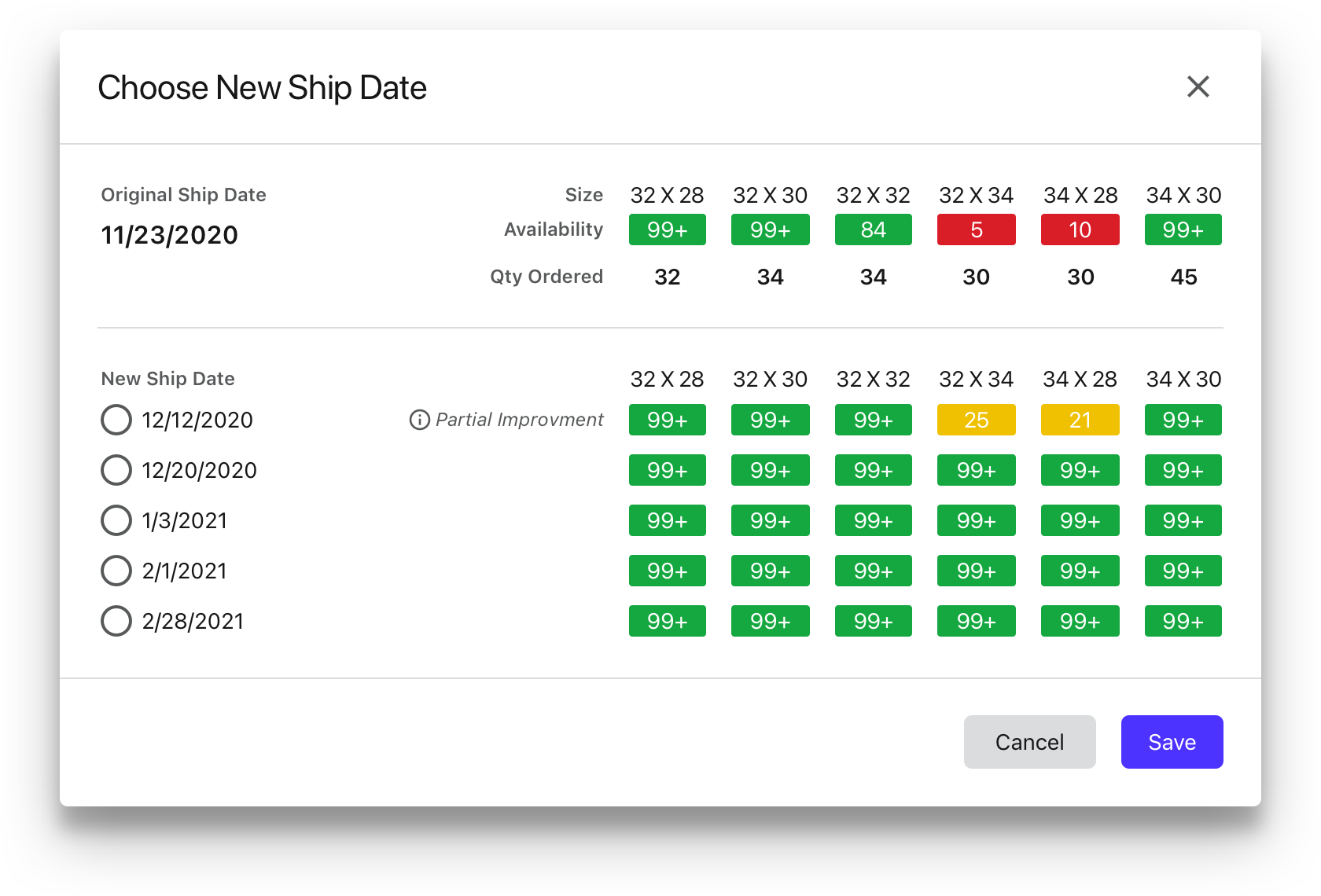 Just because an item isn't available on your selected date doesn't mean you can't add it to your order. Click on the calendar icon to pull up future availability for an item that isn't available on your selected ship date.