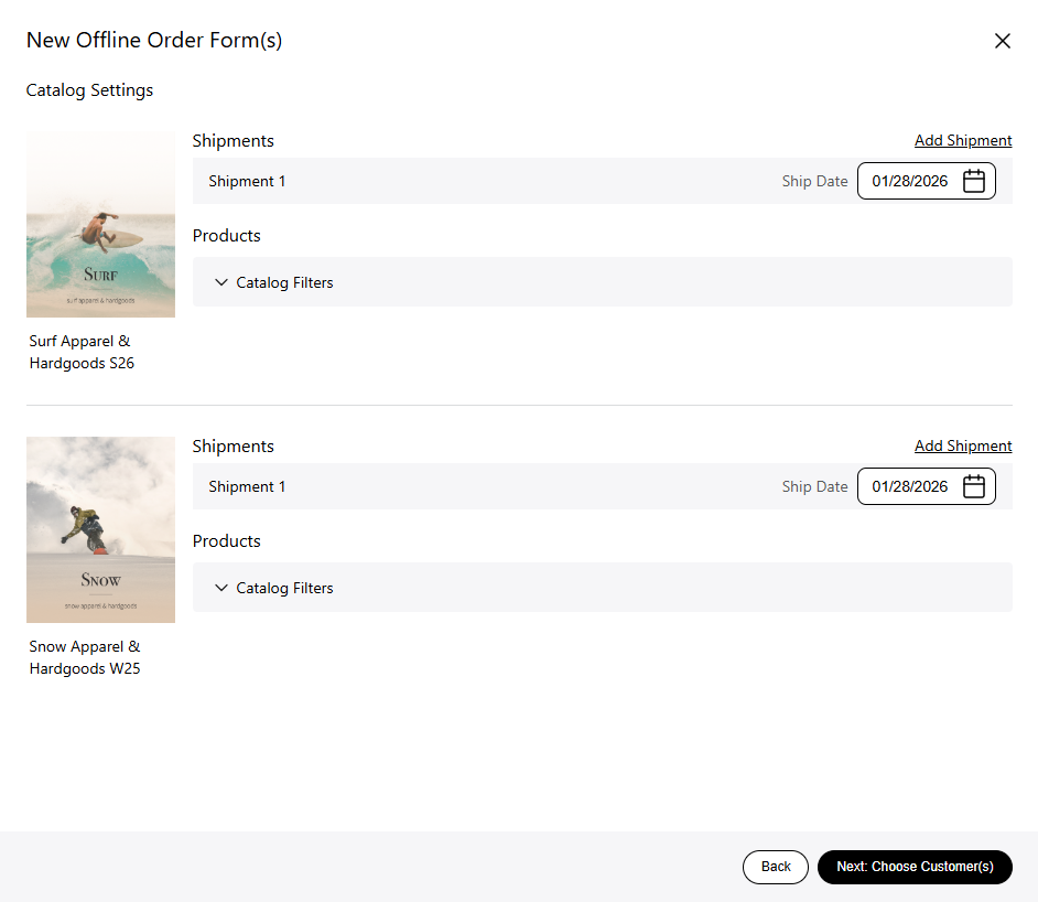 4. Set your shipment dates, and add additional shipments. You can also filter the products based on the selected filters.