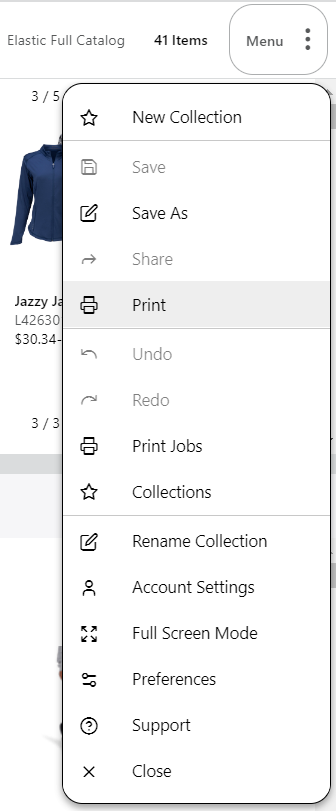 1. Click on the menu in the top-right corner of the Collection builder, and select 'Print'.