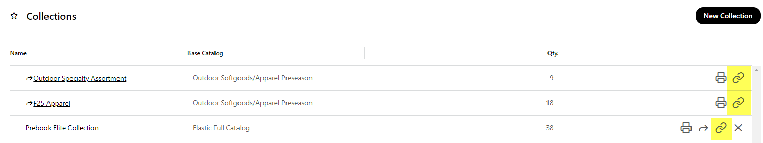 a. From the Collections dashboard, click the link icon at the far right of the collection.