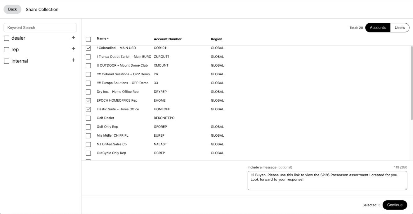 Whether you are a rep, merchandiser, or sales leadership, creating Collections can be a powerful way to create suggested buys or highlight certain products in a catalog. So being able to share with your dealers or other reps using these Collections is a great way to get them the information they need to make the right decisions for their territories.