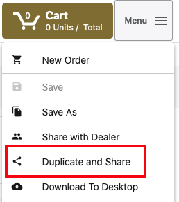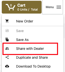 Share with Dealer for use by reps has had it's label updated and is now available through the menu while working on an order.