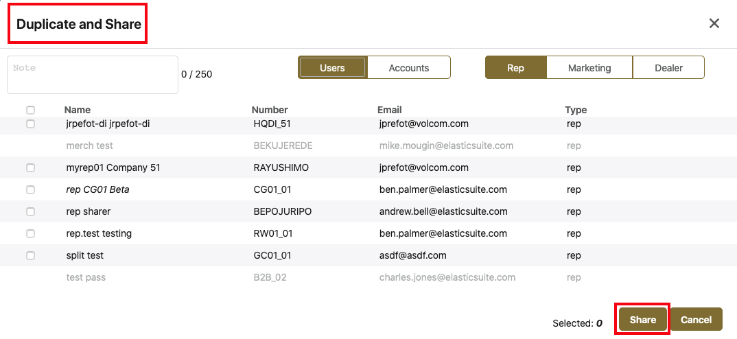 The Share function has been changed to Duplicate and Share to better describe how this function works, as this creates a copy of the order for each user selected.