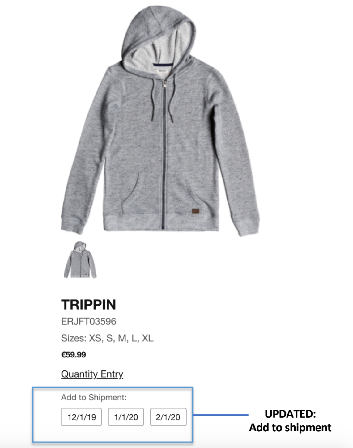 When building a standard order you will now see updated add to shipment buttons on the view catalog tab. These buttons will appear for each shipment tab created in the build order screen. They will display the shipment date of the tab hovering over the button will give the name of the tab. Depending on availability the buttons will show which shipments the item is able to be placed in.