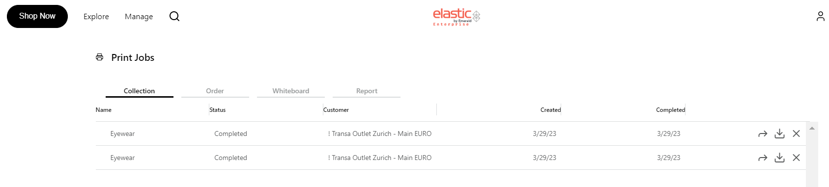 Print jobs that are in 'Completed' status can be downloaded and shared.