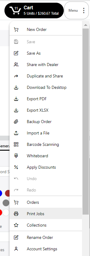 To access print jobs, go to the menu and select 'Print Jobs' from the dropdown.